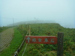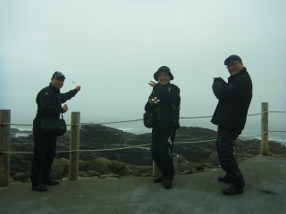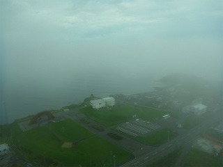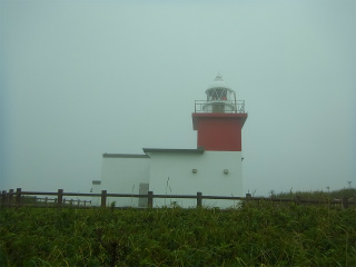 97.花咲岬2 駐車場 しかし今日は霧が出て辺りが見渡せない状態なので少し残念。でもまだ雨にはやられてないので良しとする・・・でも雨が来そう。 | 98.花咲灯台 「いや〜あのねぇ〜それにしても昨夜の花咲ガニは美味しかったねぇ〜」(低音で・・爆) 花咲港は残念ながら霧で見えなかった。 |