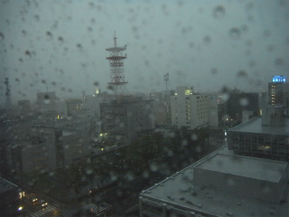 119.釧路プリンスホテル4 夕食 外の嵐とは裏腹に、優雅にお食事。スパークリングワインをほんの少しいただき、またもフラフラになるsboo・・・ホントに飲めない(^^;) | 120.釧路プリンスホテル5 ホテルの17階で食事しているのだが、ガラス窓への暴風雨が凄いことになっている。ココは安全だと思うのだが、外のバイクは・・・ |