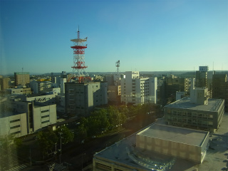 91.オーロラタワー3 沖合1850mが日ロの境界線なので、この写真で写っていると思う。相当デカイ「四島の架け橋」が、ココからは小さく見える。 | 92.オーロラタワー4 向こうの自販機でガラナを買って飲もうとした時に〜お漏らしをしてしまったので、受付のお姉さんに介護してもらった(笑) |