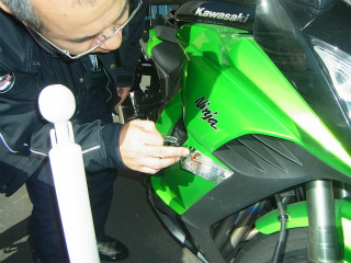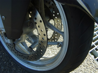 131.長流枝PA AM10:25 ココはお手洗い休憩となる。少し走るとヘルメットに虫が飛び込んできて前が見え難くなる。ヘルメットだけではなくウェアにも虫が張り付く。 | 132.長流枝PA2 BMWのエアバルブはホイールのスポーク側に付いている。珍しいので写真を撮らせていただいた。エアが入れやすい位置だと思う。 |