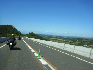 129.R143 3 久しぶりの快晴の中を帯広に向かって道を進める。ペースは相変わらずのハイペースだが、道を知り尽くすTちゃんならではやね。 | 130.道東道 往路では気が付かなかったが、こんなに景色が良かったんやね〜チョッとビックリ。気温は今回の中で一番低いかもしれない。 |