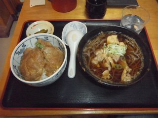 141.みなとや 昼食 PM1:20 新得町は蕎麦が有名な街で、美味しい手打ちそばが食べれるとのこと。ココ「みなとや」はTちゃんのお勧め。アベック丼が名物。 | 142.みなとや2 アベック丼は冷たいお蕎麦しかなくて、暖かいお蕎麦が食べたかったsbooはミニ丼とのセットをいただいた。とっても美味しかった。 |