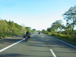 143.R38 これからはクネクネ道をハイペースで駆け抜け適当なところから道東道で解散場所まで帰還する。NCくんはパワーを絞り出してついて行く。 | 144.由仁PA PM3:30 道東道で最後の給油を済ませる。楽しかった北の大地もいよいよラストランとなる。楽しく安全に導いてくれたTちゃんに感謝・感謝。 |