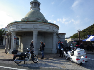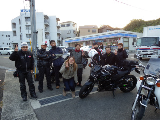 2.ローソンみさき公園前2 参加予定の〜あきらくんだったが急遽所用で欠席お見送り。ウインドスクリーンを装着したのに残念・・・またリベンジやね。お見送りに感謝。 |