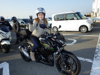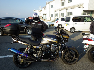 5.和歌山港3 本日、初参加の「いずさん」。マシンは渋〜いマットブラックのZ250。まだバイク経験約1ヶ月のホヤホヤさんでウェアも直前購入!! |
