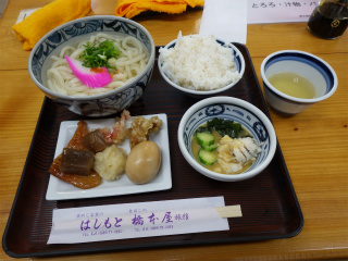 12.はしもとさん PM12:10 道の駅・日和佐で食事の予定だったのだが、食事場所が見当たらず、隣接する「はしもとさん」で昼食をいただくことにした。 |
