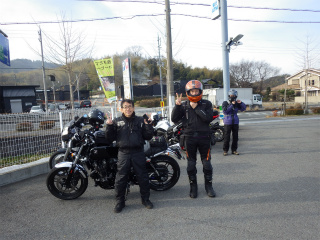 1.ファミマ泉南インター店 AM9:00 一年の中で一番寒いこの時期にツーリングする人達がいます・・・(笑) さすがに今回は参加人数が少なくて精鋭?ツーリングとなる。 |