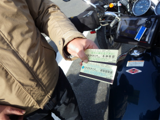 3.近畿道・八尾料金所 AM9:30 竹さんは真紅GB号の調子が悪くて、今回はショップさんの代車(CB400SS初期)で登場。 この初期モデルCBはキックスタートとなる。 |