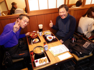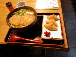 11.伏見庵さん AM11:50 お稲荷さんでの食事と言えば、きつねうどんと稲荷寿司。伏見の名店「伏見庵」さんで昼食をいただく。ココは本手打ち麺で美味しいのだ。 | 12.伏見庵さん2 稲荷大神様のお使いが「きつね」という事で、きつねは油揚げが好物だから〜きつね&いなり系がココでは定番の食事となる。 |