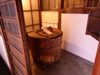 寺田屋の風呂場。木桶で中々の風情がある。 |