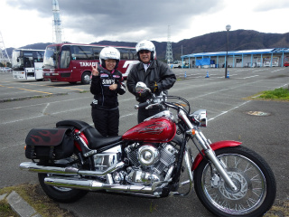 2.マリーナシティ 駐車場 AM11:10 あきらくんと共にバイクに乗り換えて下道をやって来たので少しだけ遅刻して到着。Ikimasyokaデビューのサカさん娘さん(エリちゃん) |