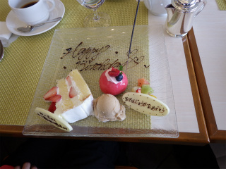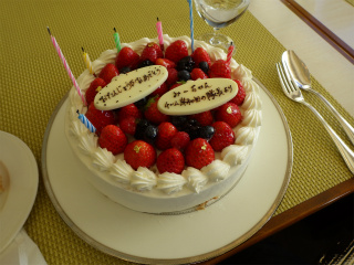 10.カーロ・エ・カーラ 7 そしてケーキは17人分に切り分けられて、お相伴にあずかった。みーちゃんのお皿にはプレートと花火が添えられてやって来た☆彡 |