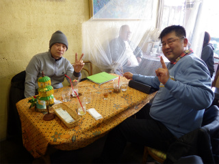 26.カルパの月 2 この後、みーちゃんにLINE内Ikimasyokaを作ってもらい皆でワイワイガヤガヤ・・・スマホ並べてまるで高校生の様な空間が生まれた(笑) |