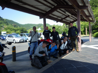 3.名神高速 桂川PA AM9:20 ここ桂川PAで全員集合。sbooの隣は初参加のおっくんさんで、マシンはイントルーダ―400。リターン後すぐに大型免許取得されたらしい。 |