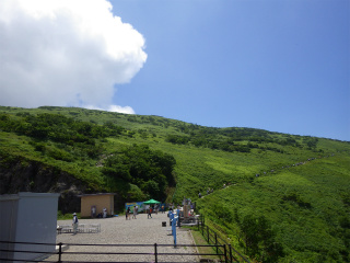 15.スカイテラス 6 この駐車場から入山料を払って山頂を目指す人達が続いている。もう少し涼しかったら登っても良かったのだが・・・即却下となる(笑) |
