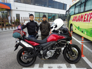 3.中島PA お久しぶりのごんべさん親子。そして今回お披露目ショットとなる。V-Strom650で今どきの新しいマシンである。親子ツーは良いね〜(^_^)v |