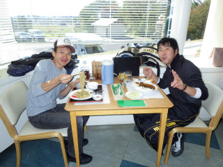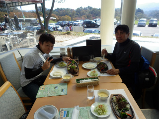 9.K422 途中寒く感じるところもあったが、日が差して暖かくなってきた。大山周辺道路はホントに綺麗で気持ちが良い快走路やね。 | 10.ジャージーランド AM11:50 ジャージーランドに目標時間よりも少し早く到着。しかしすでに駐車場は満車でかなり混雑している。レストランに急ぐ。 |