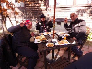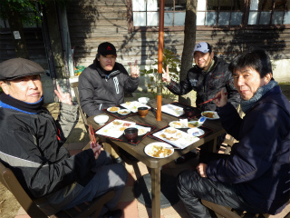 29.明恵ふるさと館 2 PM3:00 ココでもまた前人未到の3本ショット・・・高らかと振り上げた3本の焼鳥!!もぉエエて〜(^_^;) いぬやん頑張ってるね〜(^_^)v | 30.明恵ふるさと館 3 解散1 ビーバー隊長さんが追い掛けて来て下さってココ明恵で無事合流。オニューのクシタニがカッチョ良かった〜〜 今回総勢19名となる。 |