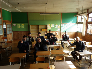 17.秋津野ガルテン 7 sbooもそこそこ頑張ったんやけど・・・いぬやんと比べると〜(^_^;) あとコーヒーをいただいてお腹一杯になった。オレンジJが美味しかった。 | 18.秋津野ガルテン 8 旧小学校の教室がそのまま保存されていて、Ikimasyoka2年1組の皆さんで記念撮影。小学2年生の机と椅子はムッチャ小さかった。 |