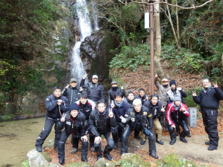23.奇絶峡 4 こちらは不動明王を祭る不動滝。おっくんは階段を駆け上がって磨崖三尊大石仏を見にいったのかな。Ikimasyokaでは若手やもんね(^_^) | 24.奇絶峡 5 今回のツーリングは移動距離が短くてヘルメットの脱着が頻繁になる。体が冷え切る前に休むのが寒中ツーではベストかな?? |