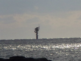 24.天神崎 2 (謎の海上巨大物体) エイリアンの来襲かと話題になったのだが、後日竹さん独自の諜報活動により「京都大学防災研究所田辺中島高潮観測塔」と解明された。 |