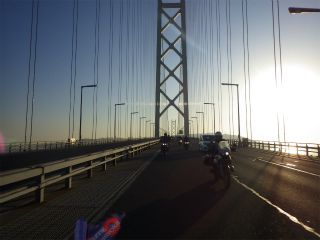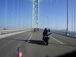 5.神戸淡路鳴門道 明石大橋 明石大橋は強風の日が多くてバイクには難所となるの事が多いのだが今日は大丈夫だった。余裕のピースサイン、しかもクリーンショット! |