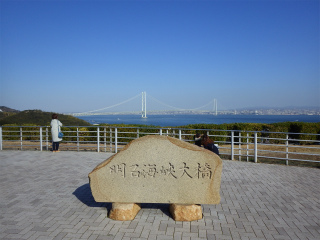 6.神戸淡路鳴門道 淡路SA AM9:50 神戸線の渋滞が無くて予定よりも随分早く到着できた。殆んどのクルマがこのSAに入るので入口が結構混雑している。目立つ所に停車。 |