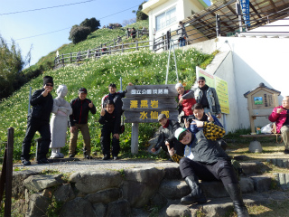 22.灘黒岩水仙郷 5 灘黒岩水仙郷山頂全員ショット!!観光客が多くてしかも狭いのでこのようなギュウギュウ詰めとなる。裏ピースで楽しそうでしょ(^_^)v |