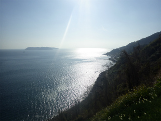 21.灘黒岩水仙郷 4 前方に見える島は沼島で約500人ほどの方が住んでいる。一番多い時は島民2,500人を越えていたそうだ。磯釣りの名所として知られる。 |