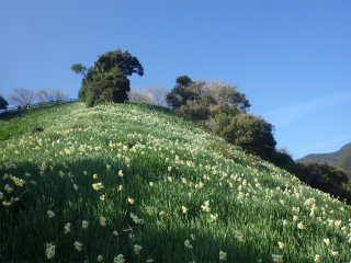25.灘黒岩水仙郷 8 急斜面7ヘクタールに約500万本もの野生の水仙が風にそよいでいる。野生でココまで多く生えるのは凄い。水仙のピークは過ぎてる感じ。 |