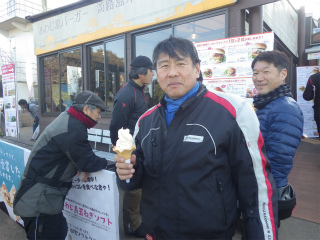 28.うずしお 2 やまさんのアイスショットでこれは玉ねぎアイス。玉ねぎの味がするらしい。寒い中でのアイスショットは漢やね。竹さんお披露目まだ〜!? |