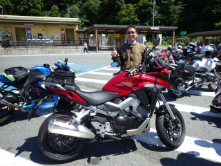 7.西名阪道 香芝SA AM10:00 和さんのサプライズお披露目でマシンはVFR800X。大方の予想を覆す意外なマシン選択で一同ビックリ。時代はアドベンチャー(^_^)/ |