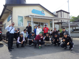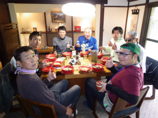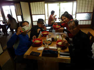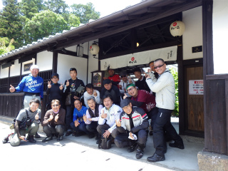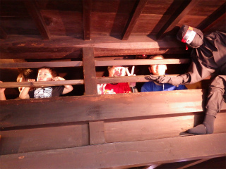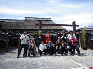 24.甲賀流忍術屋敷 PM1:50 元々は「甲賀の里忍術村」に向かう予定だったのだが評判が・・・急遽こちらに変更させていただいた。皆でニンニンポーズ(^o^)/ |
