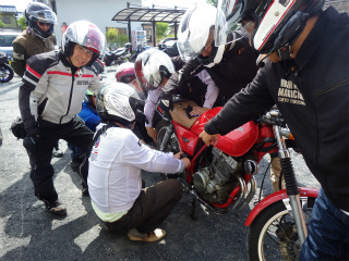 11.名阪国道 大内PA AM11:00 今回のツーは竹さんデーとなる。またもやフランジボルトの脱落。今回は一ヶ所だけで、しかもリペア部品持参。過去には四ヶ所落ちがある。 |