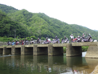 35.恋路橋 2 この写真を撮るために河原に下りた。竹さんからは恋路橋の石標を入れた写真とかバイク一列の写真とか・・・sboo汗だくドロドロ(^_^;) |