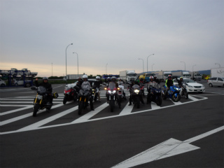 6.岸和田SA 2 集合時間を間違えたらしい。やっぱり竹さんらしい(笑) いつものゼブラショット。青空が気持ちの良い爽やかな朝だった。 |