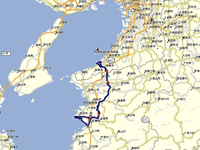 15.角長 しらすを食べて、金山寺味噌と醤油&粉末醤油を買って歴史的景観を見て(醤油資料館休館でゴメンなさい)湯浅を満喫した。 | 16.有田みかん海道 ココからは再度Bachaさんに先導をお願いして有田みかん海道をクネクネする。ココは道路もドライで海岸沿いを気持ち良く走った。 |