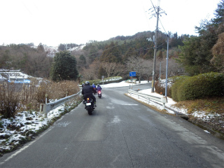 9.K18 マスター道 いつも通りK18はマスターBachaさんに先導をお願いした・・・感謝・感謝。先程の予想通り雨というか雪というかパラパラと降っている。 | 10.K18 2 ウェット路面で気温低くて路肩には雪が残っている。バイクにとって最も危ないシチュエーションだがBachaさんのお陰様で無事通過できた。 |