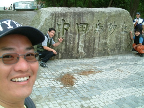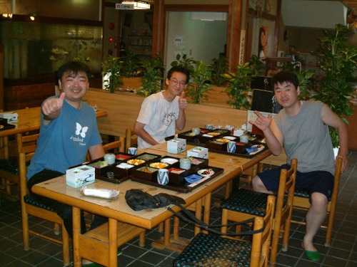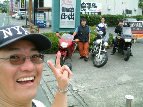 宿の前で集合ピース。SB顔でかーい・・・一人で撮ってんですっ!
